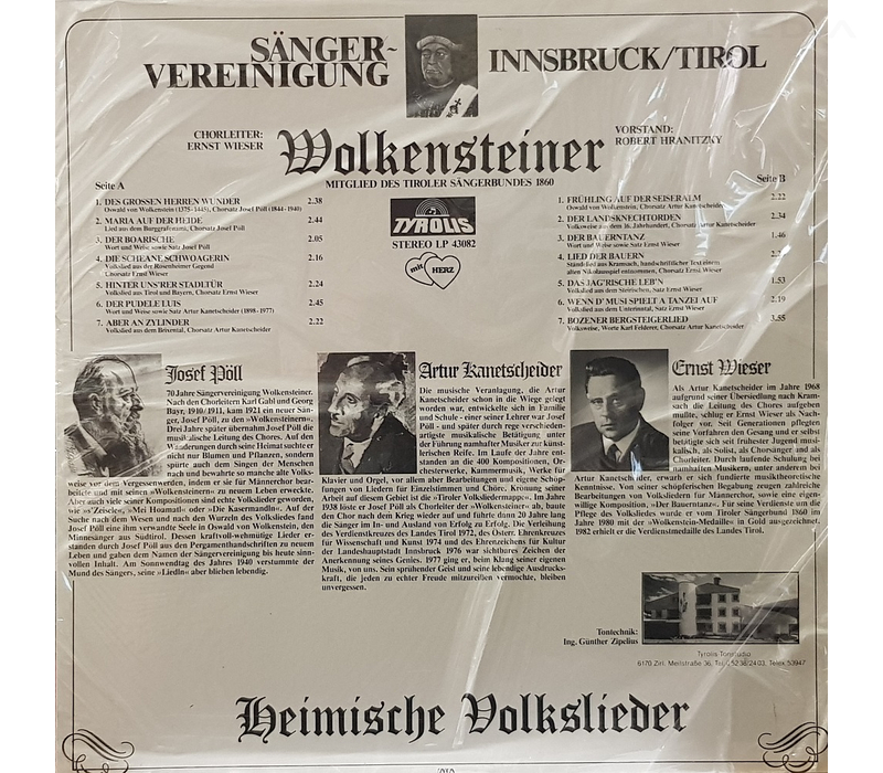 Sängervereinigung Wolkensteiner - Heimische Volkslieder 1982 LP